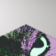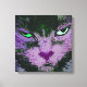 Need a fun pop of color on an empty wall? Try this cute pop art cat face, a cat with a funny expression, green eyes, a pink and purple face, and a heart shaped nose.