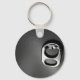 A black and white photo of a pop tab, on a keychain.