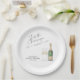 Watercolor elegant champagne bottle with two glass of champagne and text "Pop the champagne. She is changing her name.".