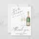 Watercolor elegant champagne bottle with two glass of champagne and text "Pop the champagne. She is changing her name.".