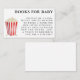 Give a poppin' welcome to your bundle of joy with these playful “She’s Ready to Pop” baby shower book request cards featuring watercolor popcorn and kernels. The retro striped design perfectly captures the fun of the moment with a wholesome movie night vibe. Perfect for moms-to-be who enjoy lively and refreshing party vibes. Personalize it to make your celebration uniquely yours.