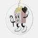 Lightweight, smooth, pure white ornament with nice sheen. Perfect size to be seen from across the room ... and to attract closer inspection! Price was great for ordering enough for the whole family! Clear, bold black design just as requested. Matches the order exactly. Just so nice!