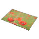 Placemat with vibrant red poppy flowers in a green field full of poppies. It has a strong emotion of hapiness, spring and summer.