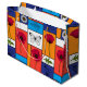 Colorful boxes and hand drawn poppies, daisy and butterfly, seamless vector pattern
