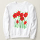 Red floral art poppies. Stylish ladies wear bright, colourful design.