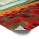 Poppies, rainbow and puffy clouds poster