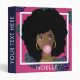 This design features a natural beauty with a black curly afro, popping pink bubblegum, with a white border, on a backdrop of colorful, tropical monstera leaves, on a magenta background. Customize this binder with your name and subject.