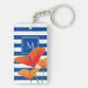 Poppy Chic Blue Stripes Monogram Keychain