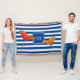 Poppy Chic Blue Stripes Monogram Throw Blanket