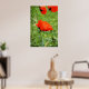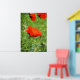 Red colorful poppy after the rain, green background