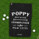 Grandfather is for old men, so he's Poppy instead! This awesome quote design is perfect for Father's Day, birthdays, or to celebrate a new grandpa or grandpa to be who loves to golf. Design features the saying "Poppy, because grandfather is for old guys" in white lettering on a black background. Personalize with his initials along the bottom for a custom touch.