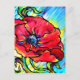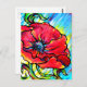red poppy with green leaves in yellow and teal background, acrylic on canvas by artist Nada Meeks