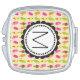 Compact travel mirror with a sweet summertime pattern featuring popsicles and ice cream cones in colorful vibrant watercolors. Write your custom monogram inside a round frame with a whimsical flower shape.