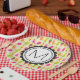 Paper plates with a sweet summertime pattern featuring popsicles and ice cream cones in colorful vibrant watercolors. Write your custom monogram inside a round frame with a whimsical flower shape.