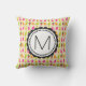 A pillow with a sweet summertime pattern featuring popsicles and ice cream cones in colorful vibrant watercolors. Write your custom monogram inside a round frame with a whimsical flower shape.