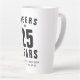 Popular 25th wedding anniversary party celebration mug for married couple, parents, friends, family etc. Black and white typography latte cup with Mr and Mrs surname plus custom date of marriage. Customizable for any year i.e. 1st 5th 10th 40th 50th 60th 70th. Cheers to 25 years! Add your own quote optionally. Unique personalized gift ideas for him and her. Traditional silver anniversary presents.