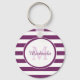 Popular Bright Purple Stripes Pattern and Monogram Keychain
