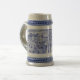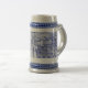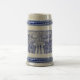 A blue and white stein mug, with an 1894 woodcut pattern