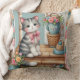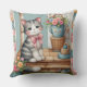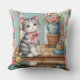Porch Kitty Floral Patchwork Scene Throw Pillow