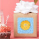 A porcupine / puffer fish picture with a blue patterned background.