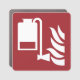 Foam applicator unit and flame icon on red background.