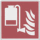 Foam applicator unit and flame icon on red background.
