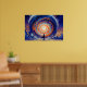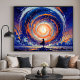 Artwork of a lone figure standing in front of a portal vortex. A brilliant, swirling vortex dominates the scene, pulsating with energy and color, while a solitary observer stands silhouetted against the light. The rich blues and purples of the landscape contrast with the fiery heart of the portal, creating an atmosphere of mystery and anticipation. An evocative piece that sparks the imagination. A lone figure provides a sense of human scale against the overwhelming cosmic phenomenon. The dynamic composition and vibrant colors make this a striking focal point, perfect for adding a touch of the extraordinary to your home decor. This artwork can be customized, printed, and or downloaded.