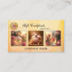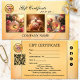 Gift certificate featuring 3 of your custom photos framed by an artistic feminine ocher and pink design. For your convenience a logo template, QR code template and social media icons are added. The social media icons are separate images and you can choose which ones you would like to use or easily replace an image with another icon. Beautiful for a jewelry seller, a gift boutique or perfume retailer.
