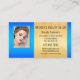 A modern business card featuring 4 photos of your choice (optional) framed by a turquoise blue and gold artistic design. A beautiful business card for a beautician or anyone who would like to present a portfolio.
