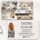 Interior design business card featuring a photo grid with your custom photos and logo on the front. On the back is your own portrait photo as well as a QR code and social media information. The background colors as well as text background (sizes) can be changed in the advanced editor. The social media icons can be replaced or deleted according to your needs. This business card is great to show your customers some of your work.