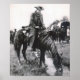 VINTAGE WESTERN PHOTO PRINT COWBOY ON TRAIL RIDE HORSE STOPS FOR A DRINK