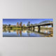 Portland Oregon Skyline Cityscape with Hawthorne Bridge Water Reflection against Beautiful Blue Sky Poster