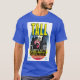 My 11 yo wore adult XL (5’7” 165#). The 8yo is small framed. She wore adult small and tied it in the back. Grandma wore adult large with long sleeve shirt underneath. Tall girl adult medium. Dark haired male adult large. Good quality dark Heather gray, Gildan brand shirt. -it was next up from basic choice and cost about $20 per shirt. Not too thick or thin. Washed and dried well, no major shrinkage. Not see-through. Can wear a bra under it fine. Screen print is just as shown and well done, front and back.