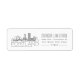 This label features a stylized illustration of the city's unique skyline with its name underneath.