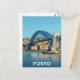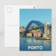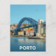Celebrate the historic charm of Porto, Portugal, with this beautiful retro-style travel postcard. It highlights the iconic Dom Luís I Bridge spanning the Douro River, with the colorful houses of the Ribeira district lining the shore. Ideal for Portugal travelers and architecture enthusiasts.