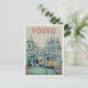 A great gift for all Porto lovers ideal to offer or to send to a friend, nice retro original illustration postcard with a view of tramway and church in Porto Portugal