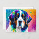 Portrait of a Bernese Mountain Dog Postcard, watercolor paint, colorful water drops, animal, pet, AI Generation