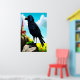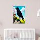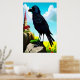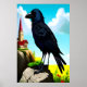 A black crow sitting on a stone with a castle in the background. This is a AI generated art.
