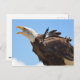 Portrait of bald eagle (Haliaeetus leucocephalus) the open beak on the blue sky background