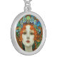 Portrait of Beautiful Woman in Stained Glass Style Silver Plated Necklace