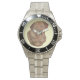 Has heft and feel of expensive stainless steel quartz watches. Good band with safety catch. I removed links, which is easy because engraved arrows show direction to push the linking pins. As always by this seller, the image (a railroad logo) is a perfect reproduction of my emailed image, and is precisely spaced and aligned.