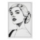 Black and white illustration of an elegant woman with a retro style. It is portrayed in profile, with an intense look and dark lips. Her hair is topped in wavy waves, reminiscent of the glamorous style of the 50s. The illustration shows a high level of detail in the facial features and highlights the grace and sophistication of the subject through expressive line work.