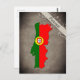 Postcard with an outline of Portugal, colored in the design of the national flag.