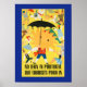A beautiful image of a tourist poster for Portugal. The poster depicts a man holding an umbrella with colorful people raining from above. This poster would be perfect in any room.