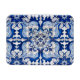 Portuguese Azulejo Seamless Pattern in blue and white transported to the surface of a kitchen magnet, preserving its history and tradition. Azulejo is a form of Portuguese or Spanish painted, tin-glazed, ceramic tilework. It has become a typical aspect of Portuguese culture. Portugal imported azulejo tiles from Spain, and their use was widespread in religious and private architecture, particularly on facades.