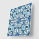 Portuguese Azulejos Blue Floral Tile Pattern Square Wall Clock