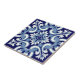 This product has an intricate design with a dark blue background and white ornamental patterns. The design is reminiscent of traditional ceramic or porcelain styles, which may interest those who appreciate classic or vintage aesthetics.