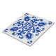 Elegant blue and white Portuguese ceramic tile featuring a central round medallion and simple round floral ornaments in each corner. Inspired by classic Lisbon tilework, this clean and timeless design is perfect for customization — ideal for names, dates, or meaningful phrases.