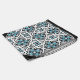 This product has an intricate design with a dark blue background and white ornamental patterns. The design is reminiscent of traditional ceramic or porcelain styles, which may interest those who appreciate classic or vintage aesthetics.