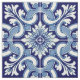 This product has an intricate design with a dark blue background and white ornamental patterns. The design is reminiscent of traditional ceramic or porcelain styles, which may interest those who appreciate classic or vintage aesthetics.